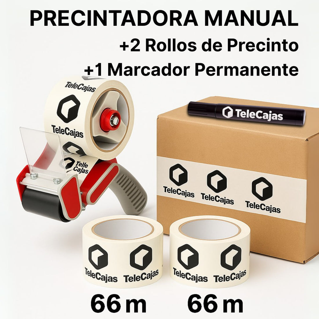 Precintadora con Rollo de precinto de embalar TeleCajas 125 metros, cinta adhesiva resistente para cajas y envíos.